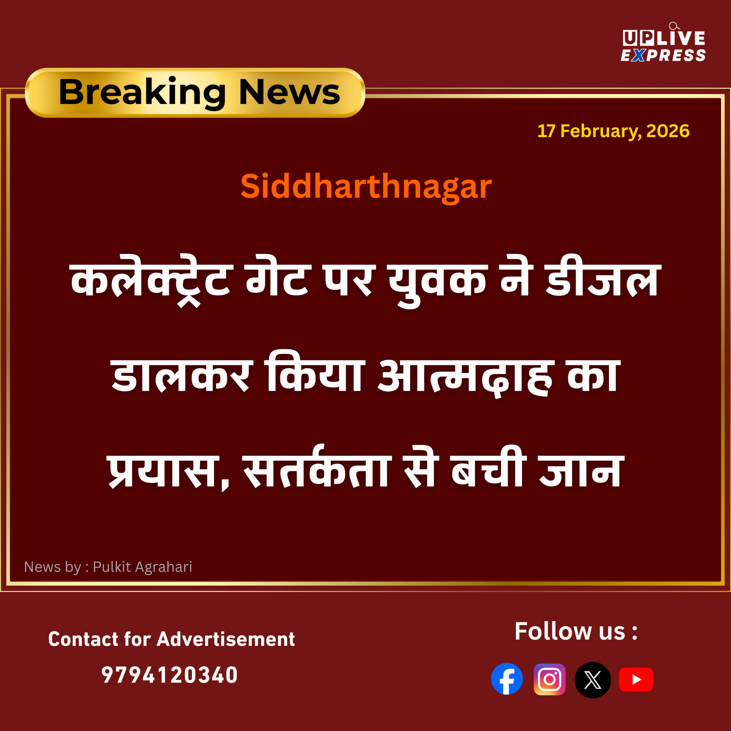 सिद्धार्थनगर में अज्ञात कारणों के चलते एक युवक ने कलेक्ट्रेट के मुख्य गेट पर डीजल डालकर आत्मदाह करने का प्रयास किया, कलेक्ट्रेट की सुरक्षा में तैनात पीआरडी जवानों की तत्परता…