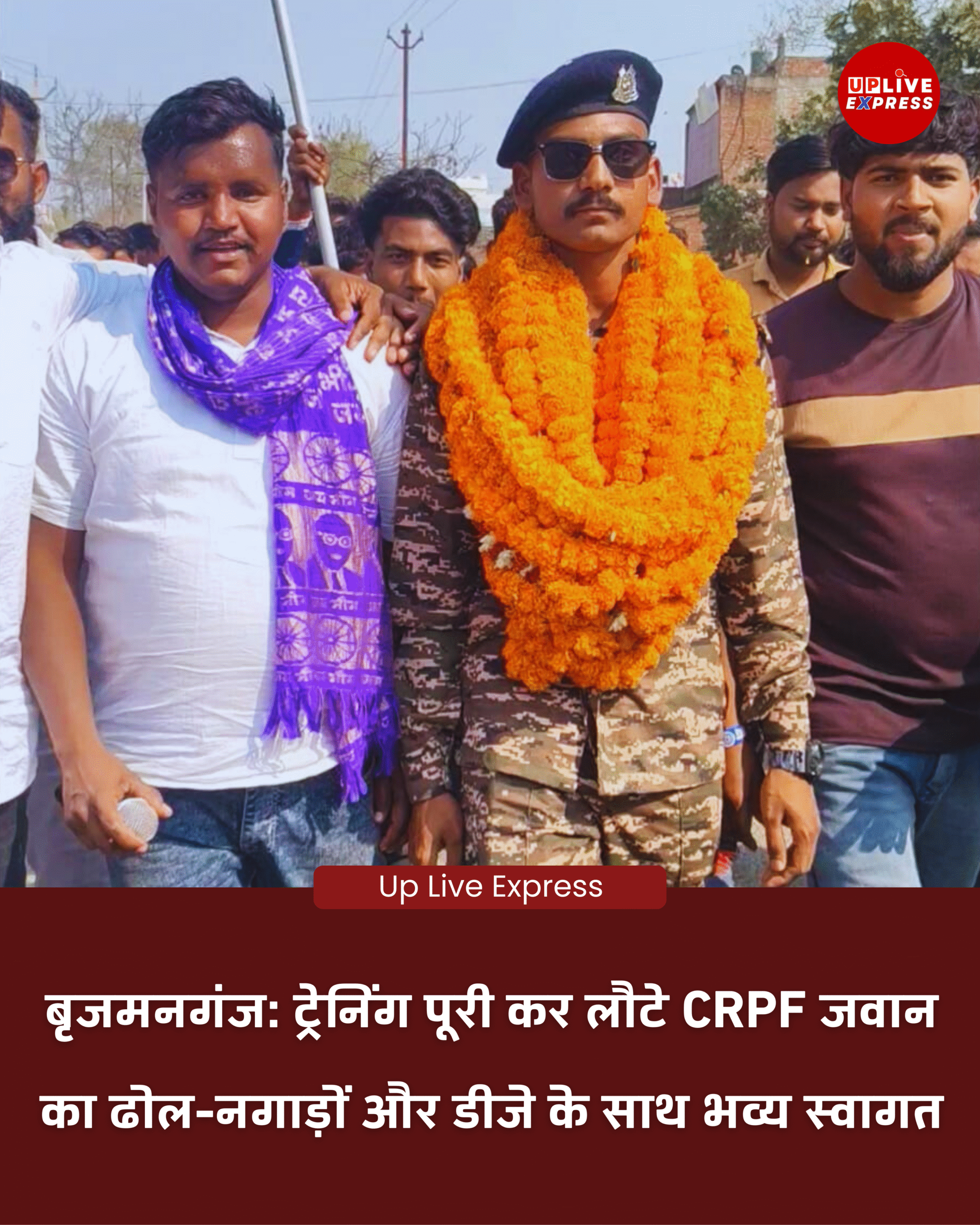 नगर पंचायत बृजमनगंज, वार्ड नंबर 4 निवासी शिवकुमार जाटव (पुत्र स्वर्गीय रामकिशन) का बृजमनगंज रेलवे स्टेशन पर भव्य और भावनात्मक स्वागत किया गया, शिवकुमार के सीआरपीएफ में चयनित होने से…