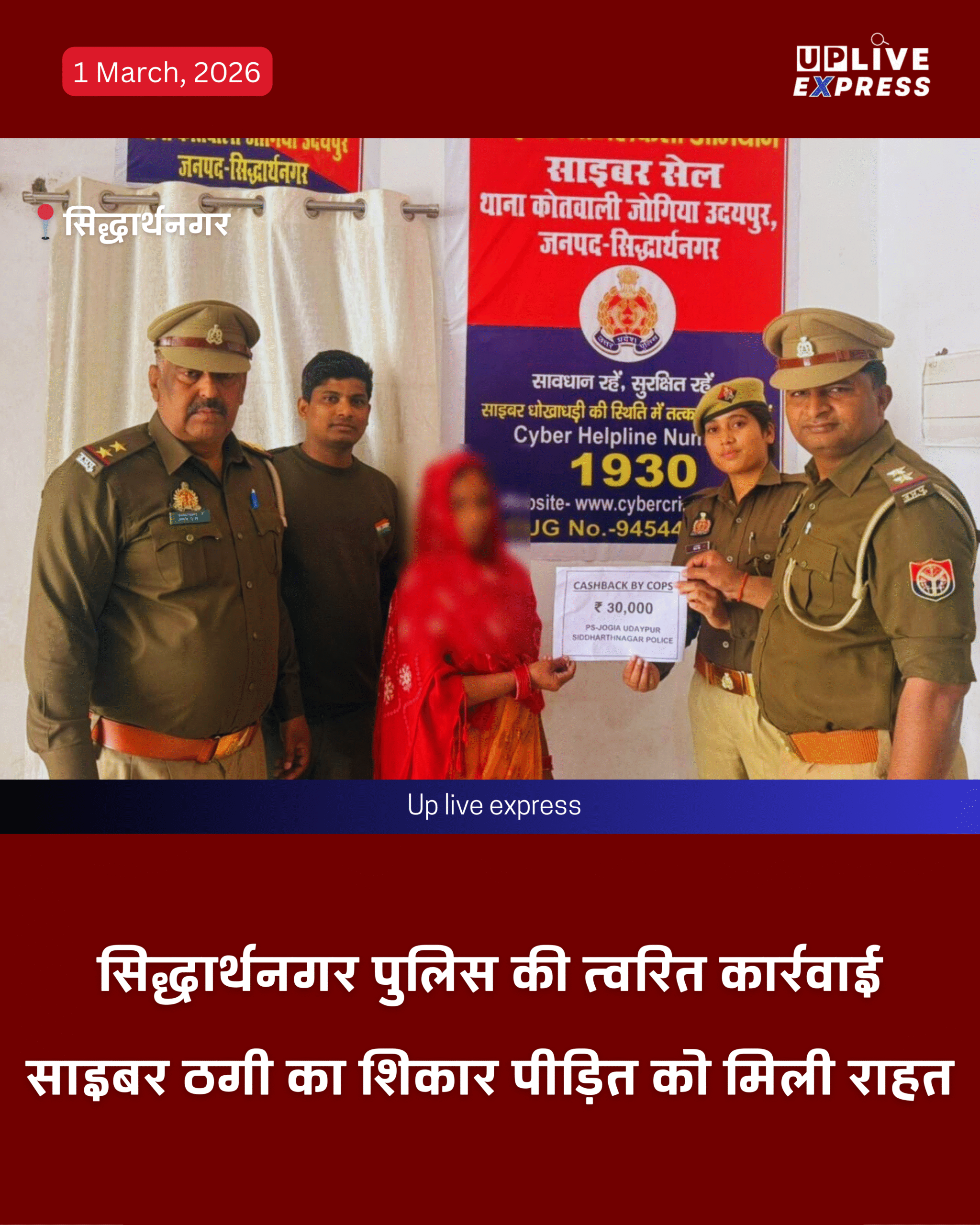सिद्धार्थनगर में साइबर फ्रॉड के एक मामले में पुलिस ने त्वरित कार्रवाई करते हुए पीड़ित को बड़ी राहत दिलाई है। यूपीआई की गलती से खाते से उड़ गए 30,000 रुपये…