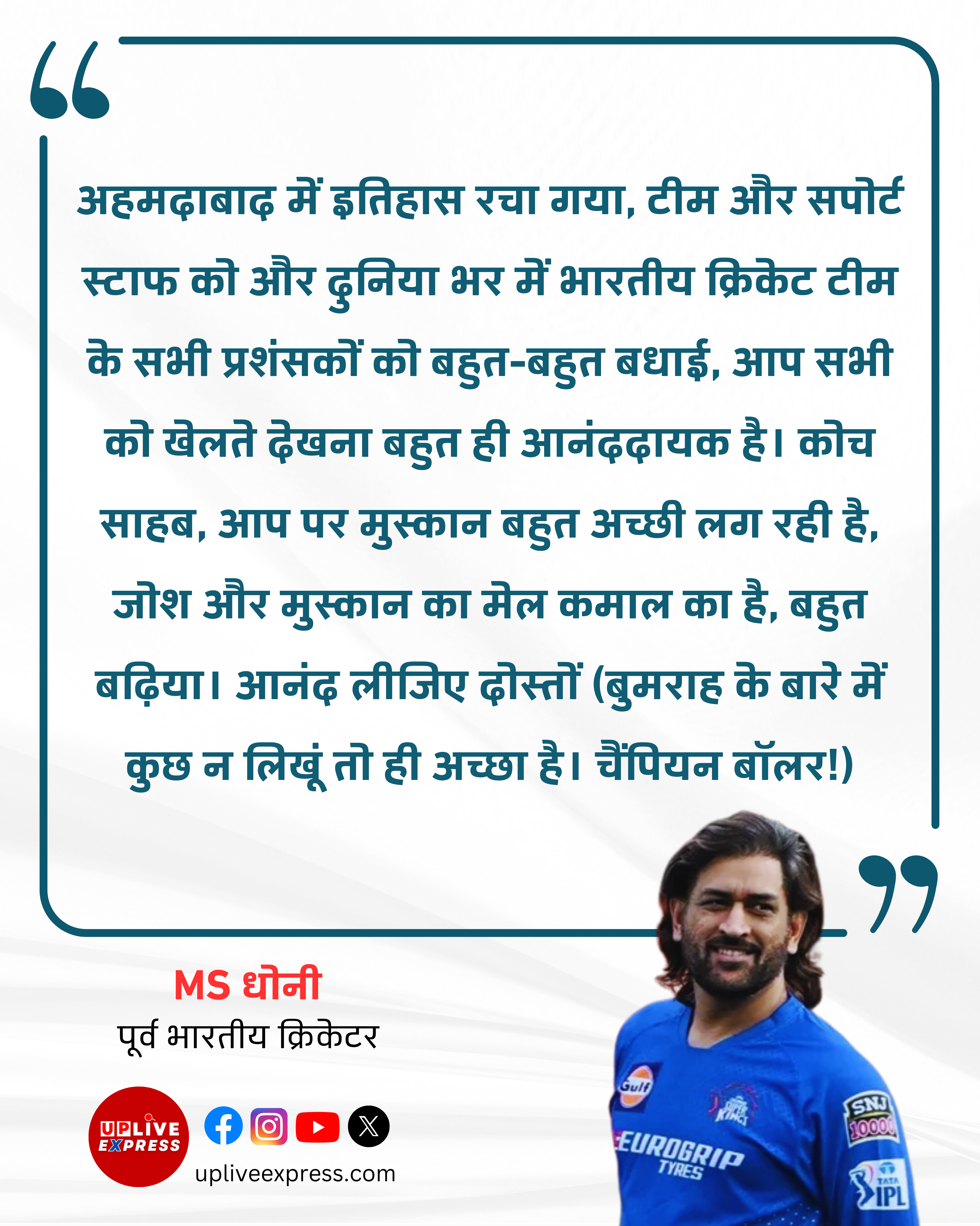 अहमदाबाद में रचा इतिहास, टीम इंडिया की जीत पर MS Dhoni का खास संदेश: