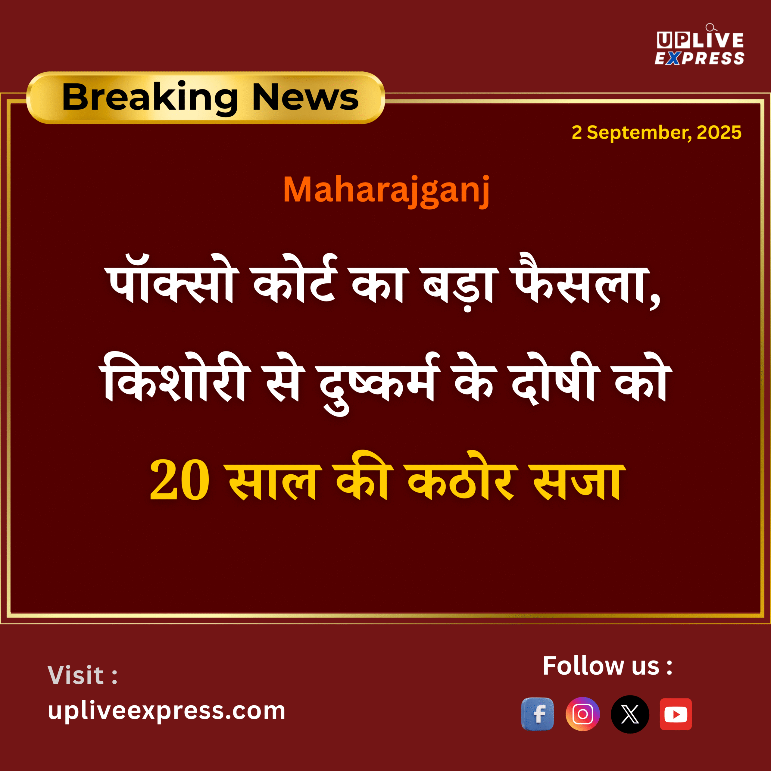 महराजगंज। विशेष न्यायाधीश (पॉक्सो अधिनियम) पीसी कुशवाहा की अदालत ने किशोरी से दुष्कर्म के मामले में अहम फैसला सुनाया, आरोपी शैलेंद्र गुप्ता को 20 वर्ष का सश्रम कारावास और 20 हजार रुपये का जुर्माना अदा करने की सजा दी गई है।