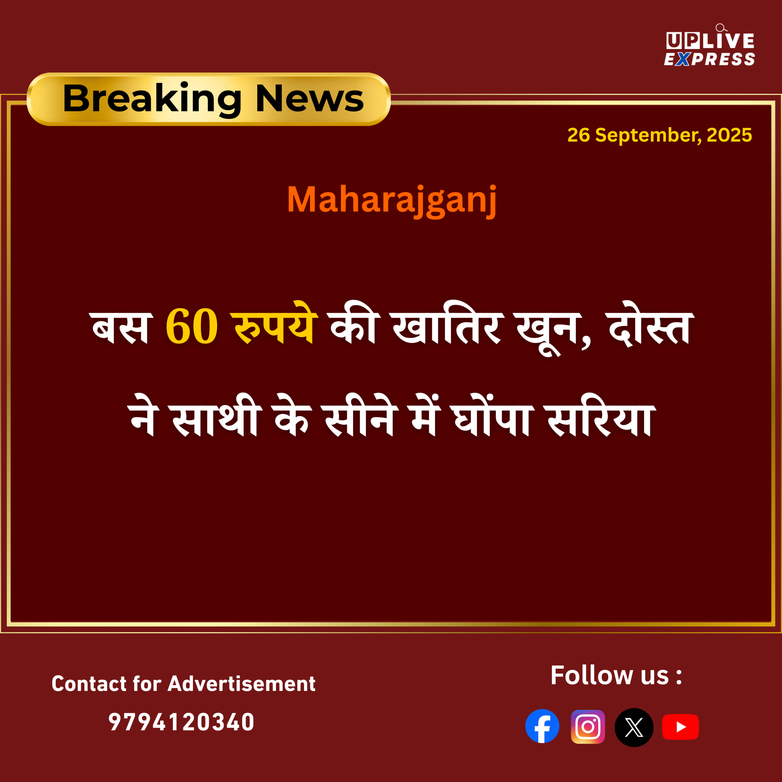 महराजगंज। सिर्फ 60 रुपये के विवाद ने एक आम झगड़े को खतरनाक मोड़ दे दिया, गुस्से में किया गया एक कदम जानलेवा साबित हुआ जब प्रेमशंकर पांडेय ने अपने सहकर्मी अजय यादव की जान ले ली।