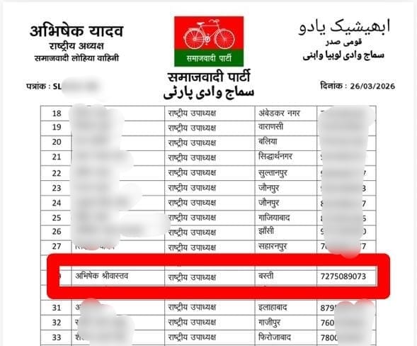 अभिषेक श्रीवास्तव बने समाजवादी लोहिया वाहिनी के राष्ट्रीय उपाध्यक्ष:
