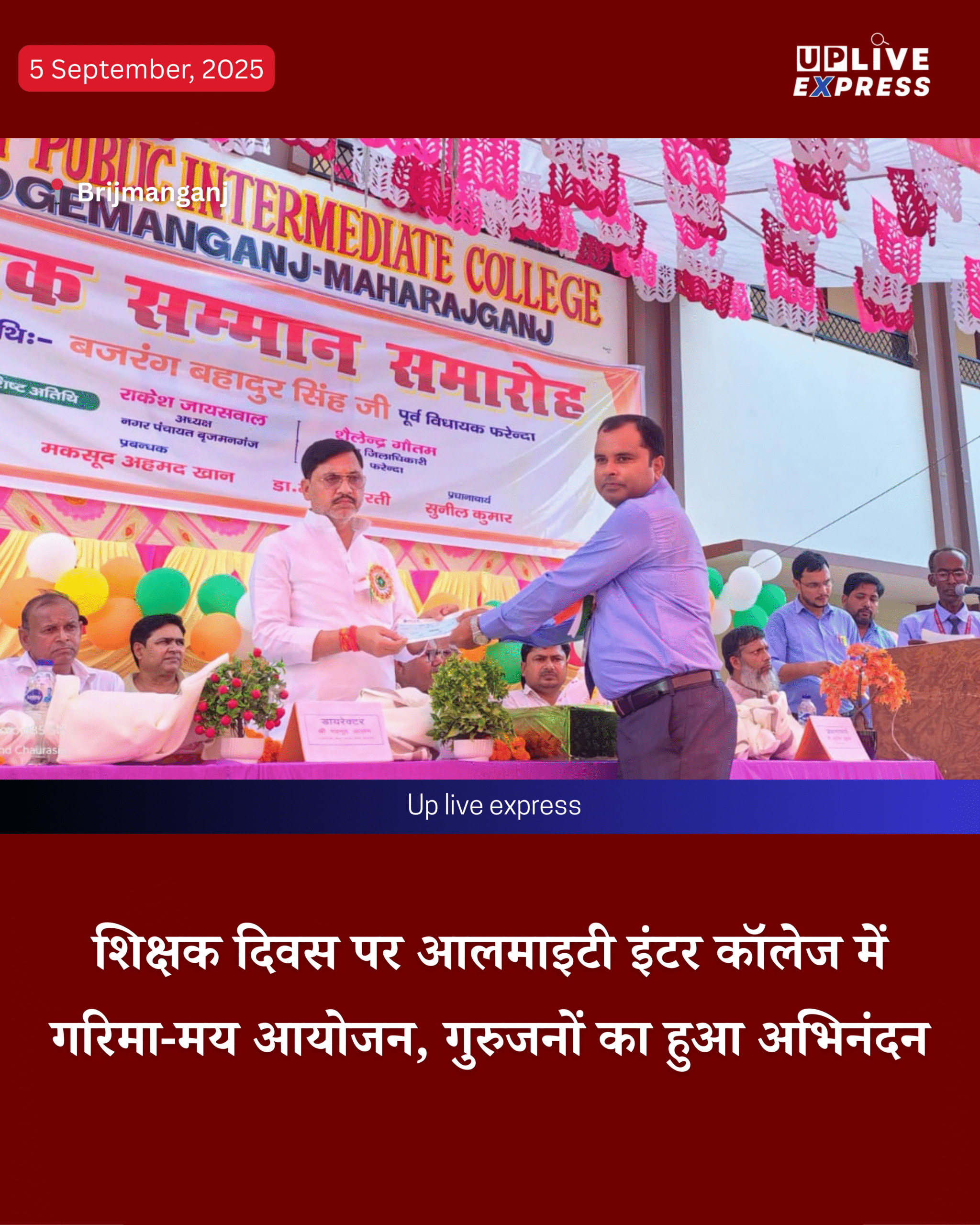 विगत वर्षों की भांति इस वर्ष भी आलमाइटी पब्लिक इंटरमीडिएट कॉलेज, बृजमनगंज में सर्वपल्ली डॉ. राधाकृष्णन की जयंती एवं शिक्षक दिवस के अवसर पर शिक्षक सम्मान समारोह का आयोजन बड़े ही हर्षोल्लास के साथ किया गया।