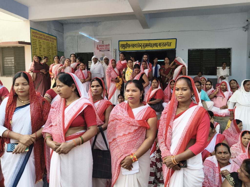 आशा बहुओं और संगिनी ने बृजमनगंज सीएचसी पर किया जोरदार धरना प्रदर्शन :
