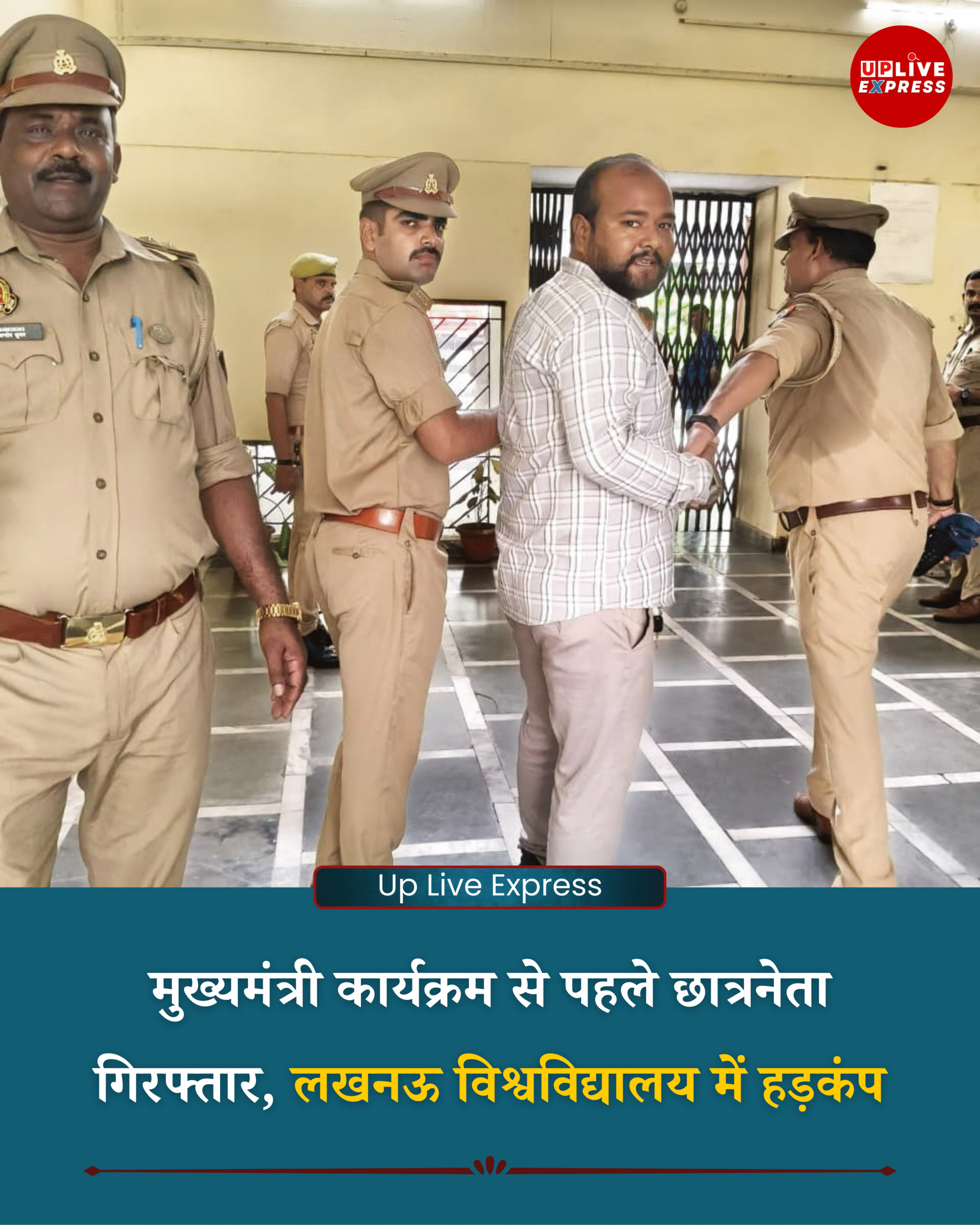 लखनऊ विश्वविद्यालय के छात्रनेता एवं राष्ट्रीय सचिव, समाजवादी लोहिया वाहिनी, अभिषेक श्रीवास्तव को विश्वविद्यालय परिसर से ACP लखनऊ और हसनगंज इंस्पेक्टर सहित 8-10 पुलिसकर्मियों ने गिरफ्तार किया, यह गिरफ्तारी मुख्यमंत्री जी के कार्यक्रम से पूर्व की गई।