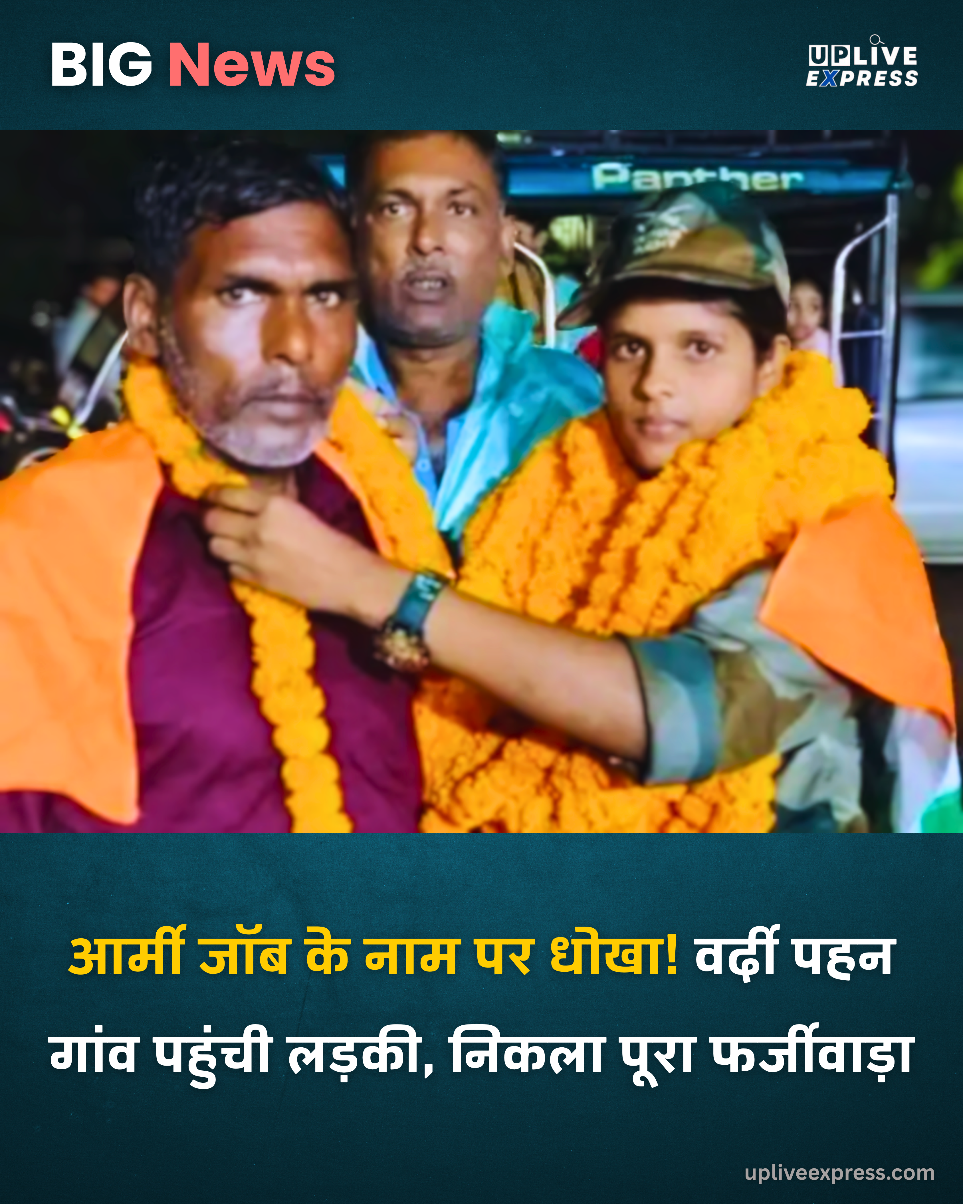 महराजगंज के निचलौल थाना क्षेत्र के डोमा कांटी गांव की रहने वाली नगमा नाम की छात्रा के साथ यह घटना हुई, आर्मी भर्ती का झांसा देने वाले जालसाजों ने उससे 2.70 लाख वसूल लिए, नगमा जब आर्मी की वर्दी पहनकर गांव लौटी तो लोगों ने सनरूफ कार में बैठाकर उसका भव्य स्वागत किया।