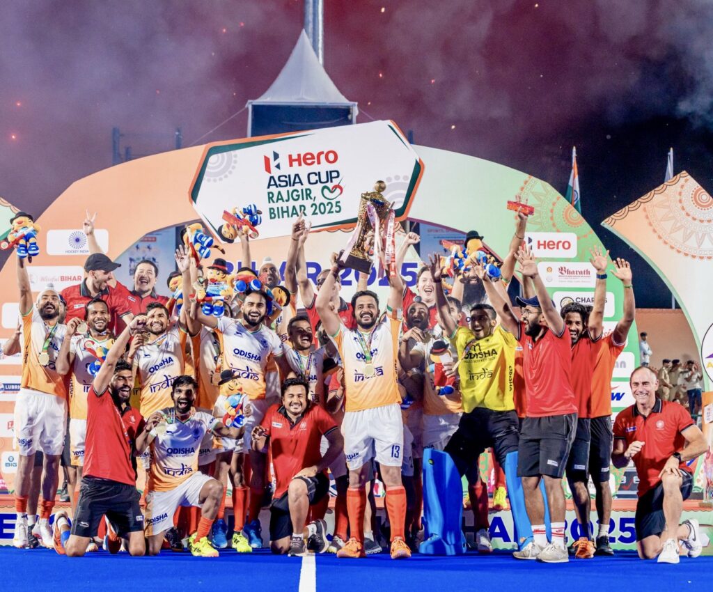 राजगीर (बिहार), 7 सितम्बर 2025 – भारतीय पुरुष हॉकी टीम ने रविवार को एशिया कप 2025 का खिताब जीतकर इतिहास रच दिया, फाइनल मुकाबले में भारत ने दक्षिण कोरिया को 4–1 से हराकर चौथी बार यह खिताब अपने नाम किया। यह जीत भारत को आठ साल बाद मिली बड़ी सफलता है।