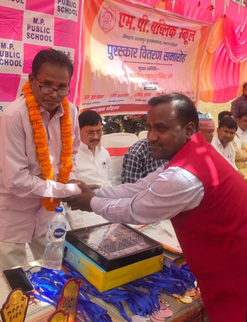 बहादुरी बाजार, महराजगंज | बृजमनगंज ब्लॉक के बहादुरी बाजार स्थित उत्तरपुर मैनहवां के एम०पी० पब्लिक स्कूल में प्रतिभाशाली व मेधावी विद्यार्थियों को पुरस्कार, मेडल और शील्ड देकर सम्मानित किया गया। इस मौके पर अनेक जनप्रतिनिधियों तथा गणमान्य लोगों की गरिमामयी उपस्थिति से समारोह बेहद गौरवपूर्ण और शानदार नजर आया।