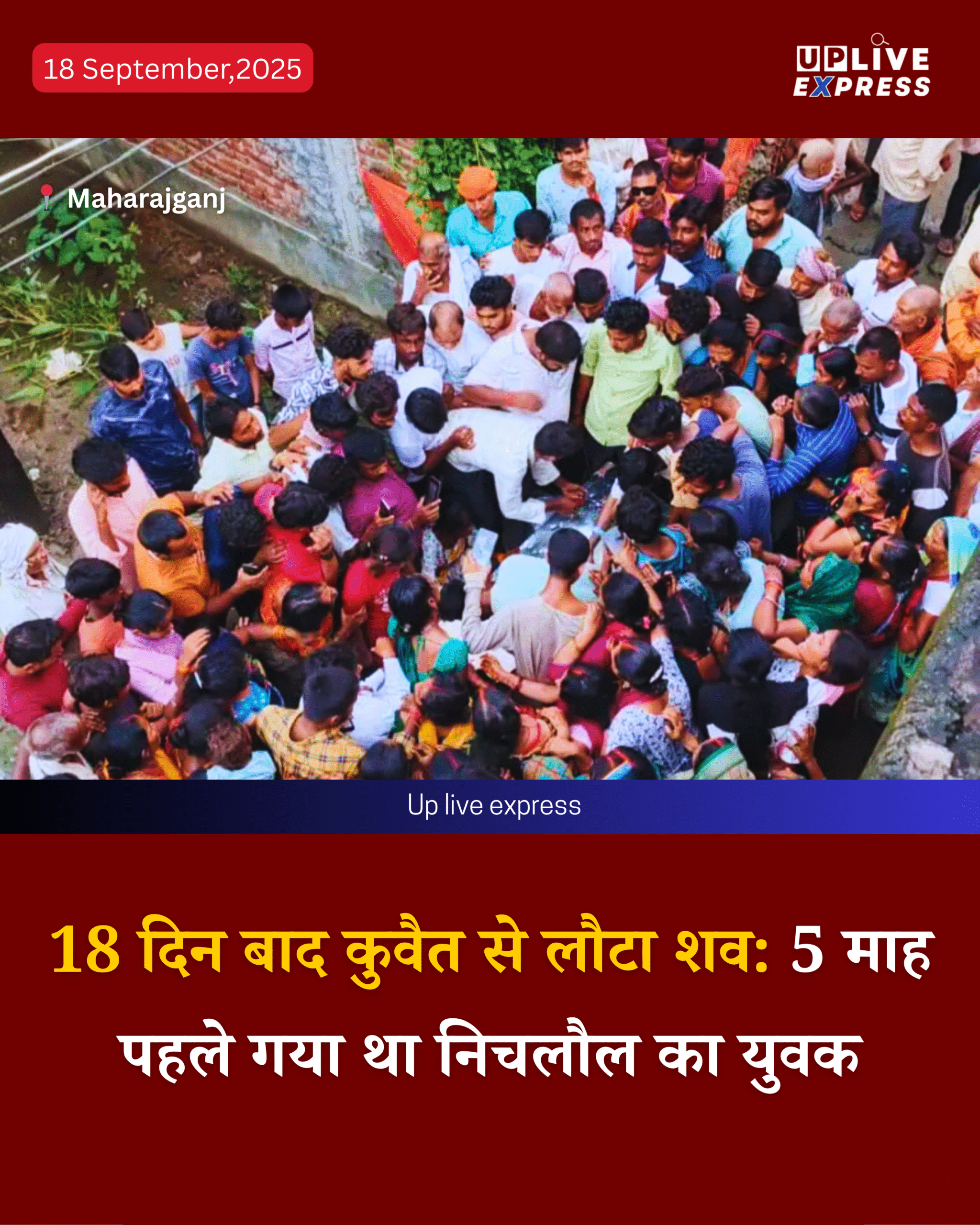 महराजगंज जिले के मिठौरा ब्लॉक अंतर्गत ग्राम पंचायत गौनारिया राजा टोला पोखरहवा में प्रवासी मजदूर रामभजन यादव का शव 18 दिन बाद कुवैत से उनके पैतृक घर पहुंचा। शव आते ही परिवार में कोहराम मच गया और पूरा गांव गमगीन हो उठा।
