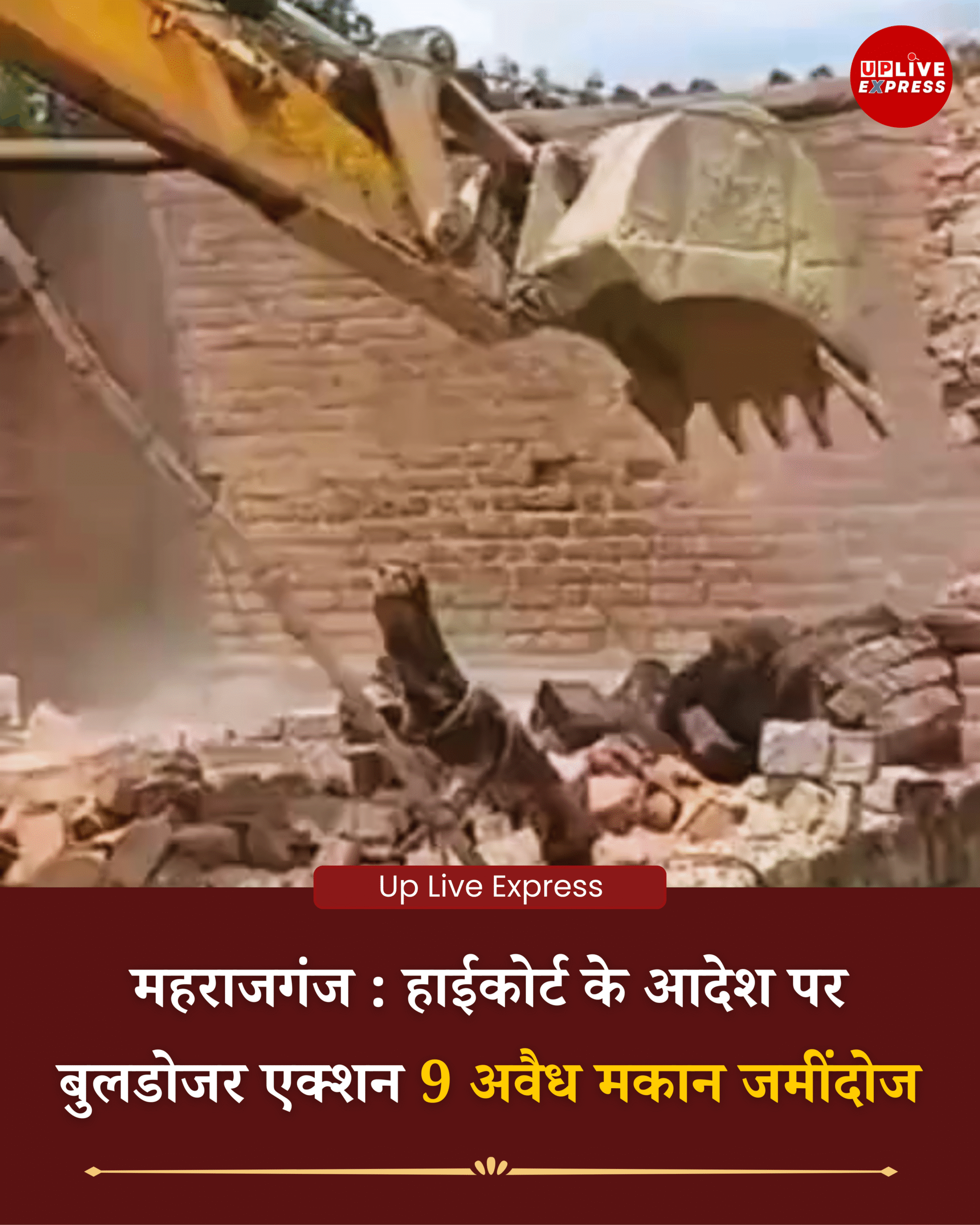 महराजगंज जिले की नौतनवा तहसील के ग्राम समरधीरा में प्रशासन ने सख्ती दिखाते हुए सरकारी खलिहान की ज़मीन से अतिक्रमण हटाया, इस दौरान 9 अवैध मकानों को बुलडोजर से जमींदोज कर दिया गया, कब्जाधारियों को पहले नोटिस देकर चेतावनी दी गई थी, लेकिन कार्रवाई न होने पर मामला हाईकोर्ट तक पहुंचा, हाईकोर्ट के आदेश पर आखिरकार प्रशासन ने बड़ी कार्रवाई को अंजाम दिया।