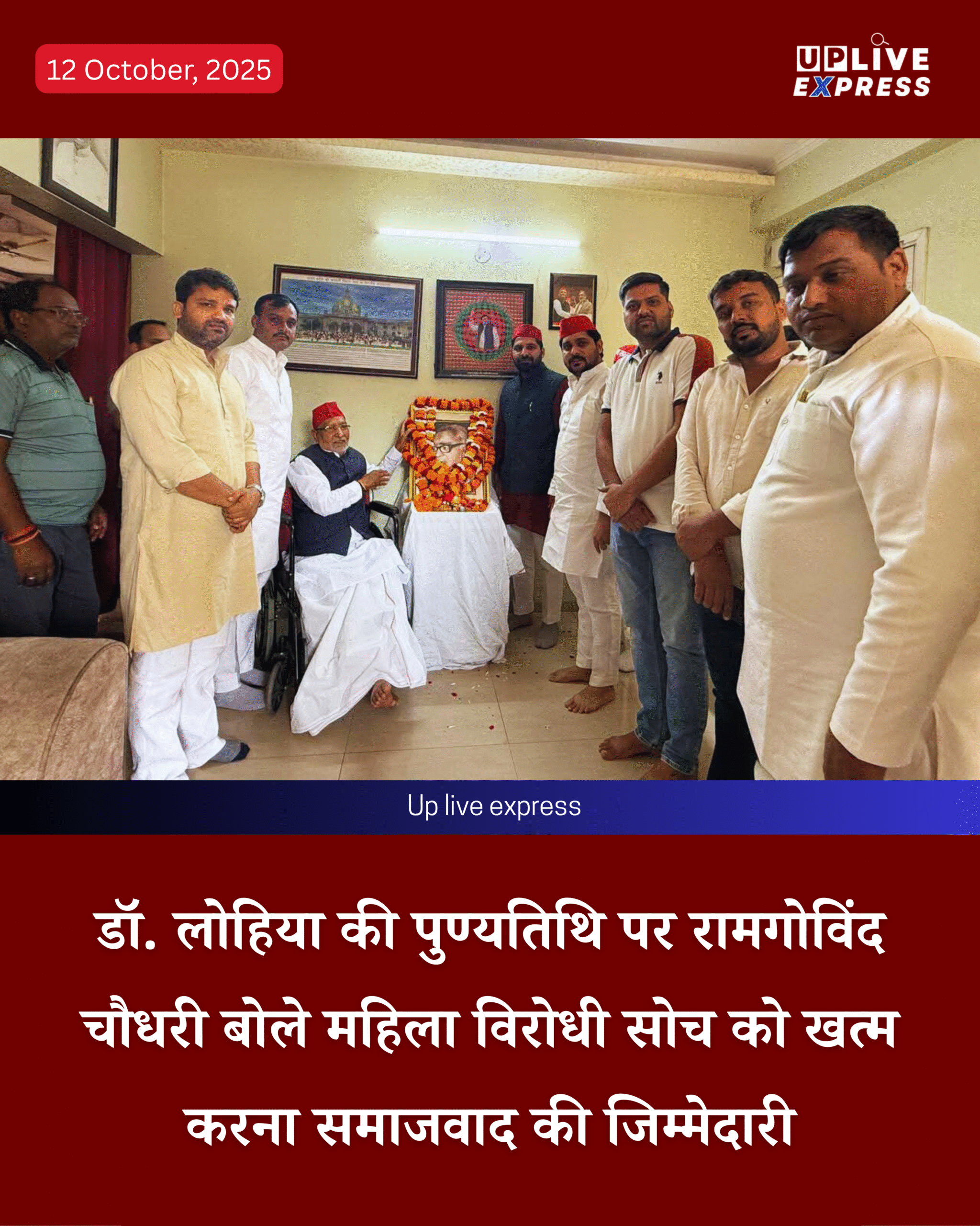 समाजवादी चिंतक डॉ. राममनोहर लोहिया की पुण्यतिथि पर श्रद्धांजलि अर्पित करते हुए समाजवादी पार्टी के राष्ट्रीय सचिव एवं पूर्व मंत्री रामगोविंद चौधरी ने कहा कि भारतीय संविधान में महिला हो या पुरुष, सभी को समान अधिकार प्राप्त हैं, लिंग के आधार पर किसी प्रकार के भेदभाव की अनुमति हमारा संविधान नहीं देता।