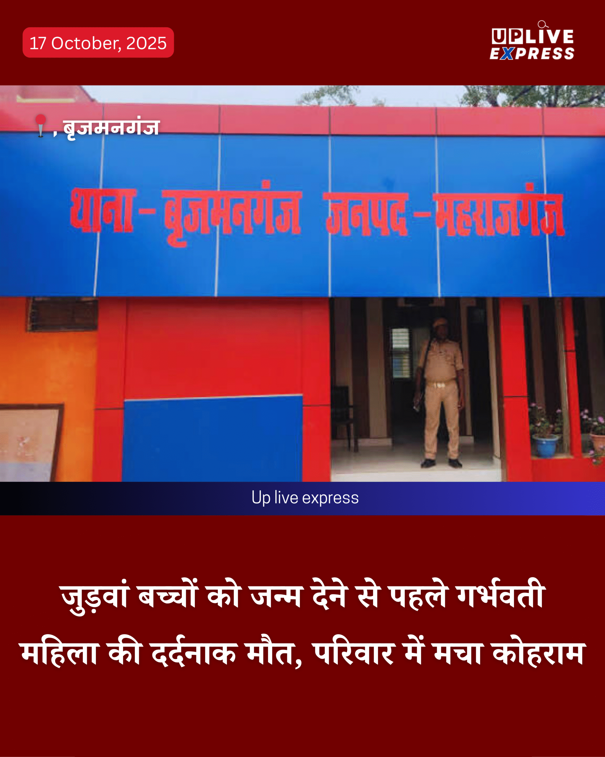 थाना बृजमनगंज क्षेत्र के नगर पंचायत बृजमनगंज, वार्ड नंबर 2 (रज्जूजोत) निवासी सुमित्रा पत्नी अनिल (उम्र 26 वर्ष) जो कि 7.5 माह की गर्भवती थी, की असमय मौत हो गई। यह खबर पूरे क्षेत्र में शोक का विषय बन गई है।