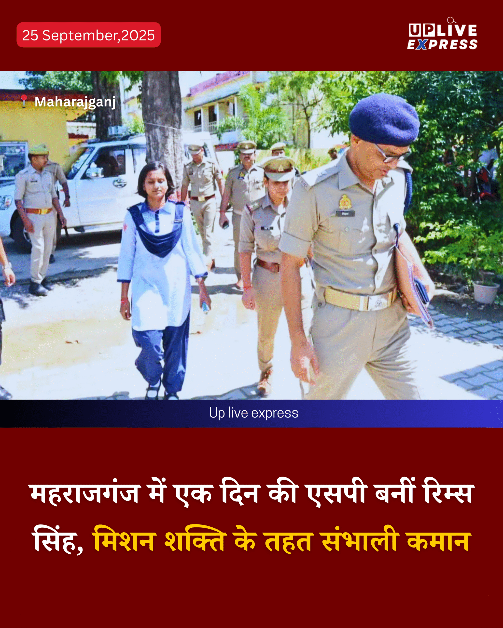 महराजगंज में मिशन शक्ति 5.0 के तहत 12वीं की छात्रा रिम्स सिंह ने एक दिन के लिए पुलिस अधीक्षक का पद संभाला। यह अभियान महिलाओं की सुरक्षा, सम्मान, स्वावलंबन, स्वास्थ्य और सशक्तिकरण पर केंद्रित है।