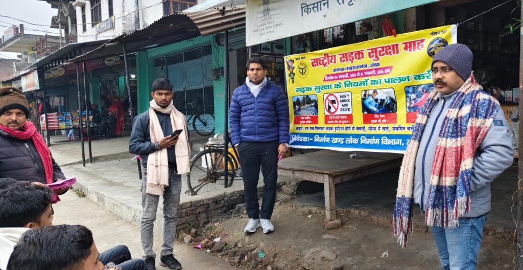 बृजमनगंज (महराजगंज) राष्ट्रीय सड़क सुरक्षा माह के तहत बुधवार को बृजमनगंज क्षेत्र में जागरूकता कार्यक्रम का आयोजन किया गया, यह कार्यक्रम कोल्हुई तिराहा एवं सोनाबंदी में निर्माण खंड, लोक निर्माण विभाग की ओर से आयोजित किया गया।