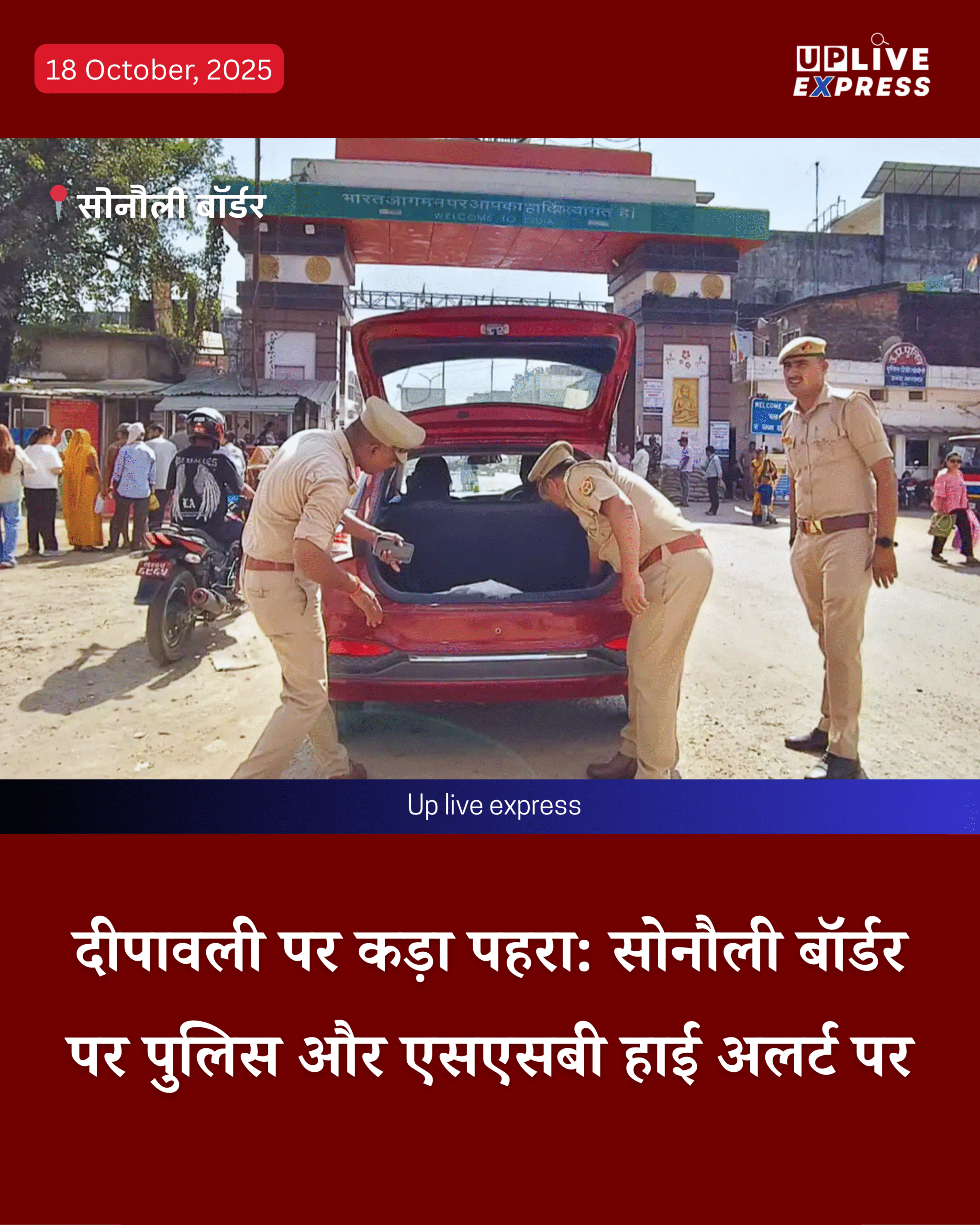 सोनौली सीमा चौकी पर वाहनों की जांच तेज कर दी गई है। तस्करी, अवैध शराब, प्रतिबंधित सामान और असामाजिक तत्वों की घुसपैठ रोकने के लिए संयुक्त जांच अभियान चलाया जा रहा है। त्योहारों के दौरान संभावित भीड़भाड़ को ध्यान में रखते हुए पुलिस ने कड़ी बैरिकेडिंग की है और सीसीटीवी कैमरों से हर गतिविधि पर पैनी नजर रखी जा रही है।