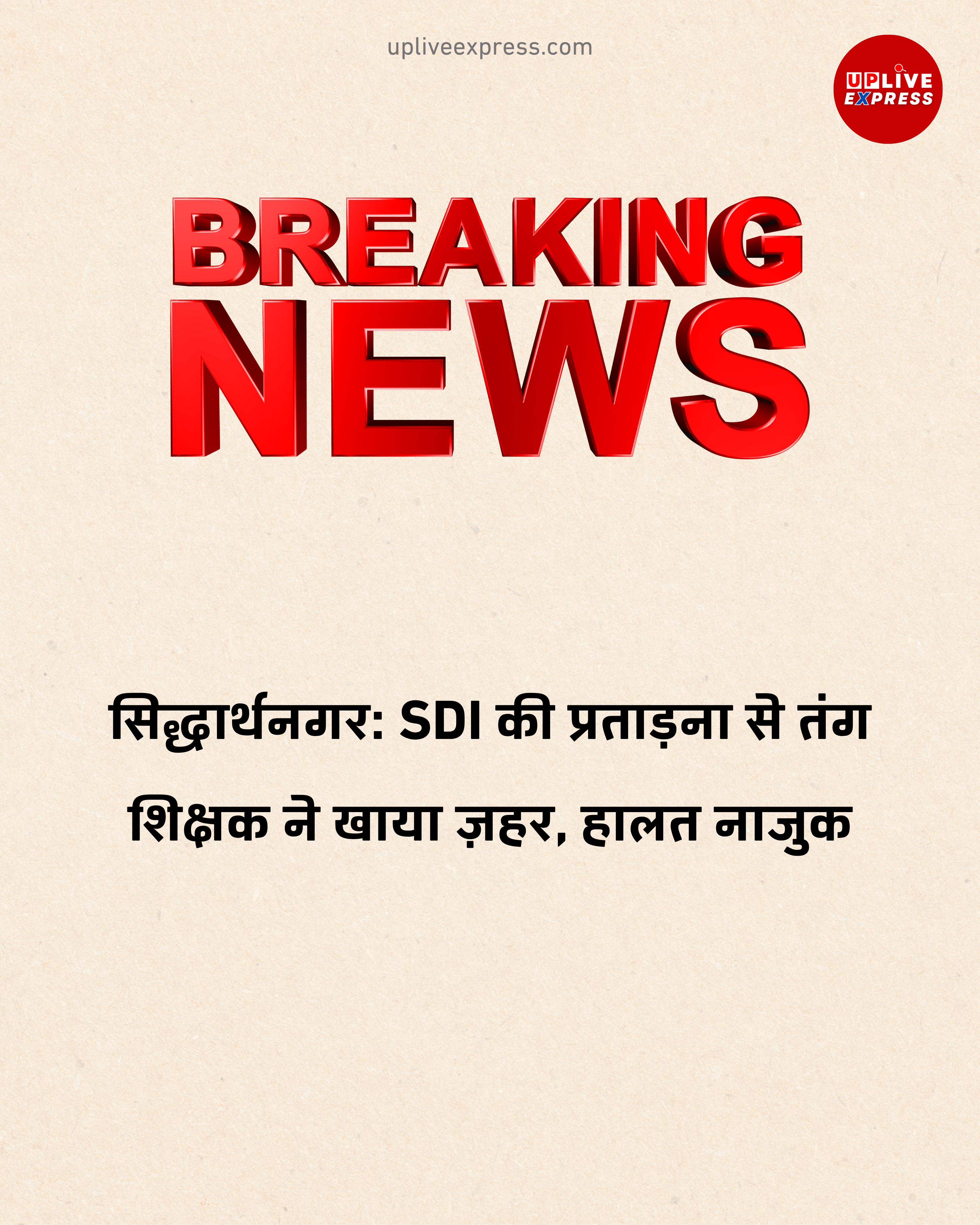 इटवा ब्लॉक के प्राथमिक विद्यालय भदोखर भदोखरी में तैनात शिक्षक शौकेंद्र ने कथित रूप से एसडीआई इटवा राजेश कुमार की प्रताड़ना से तंग आकर ज़हर खा लिया।