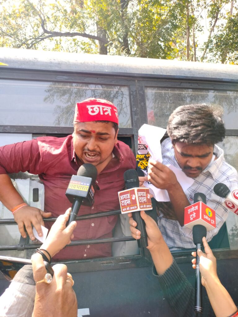 लखनऊ विश्वविद्यालय गेट पर गैस सिलेंडर किल्लत और कालाबाजारी के खिलाफ छात्र-छात्राओं का प्रदर्शन: