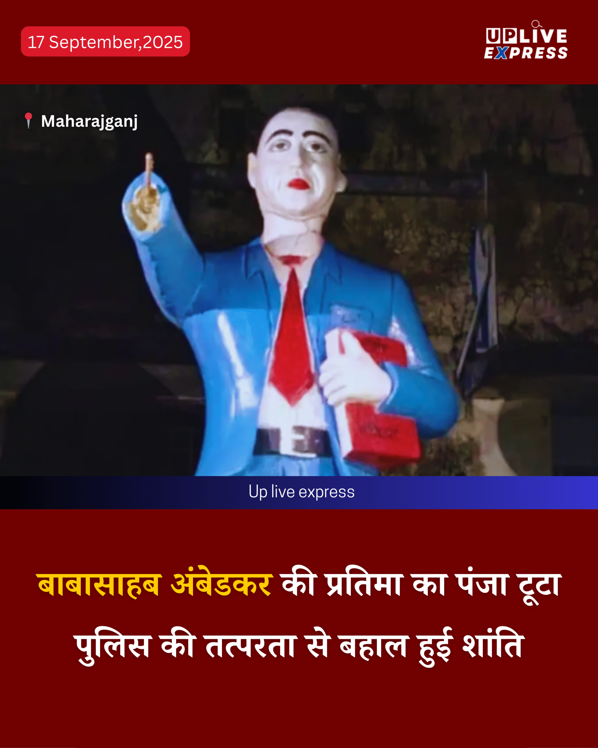महराजगंज: सिसवा विकास खंड के ग्रामसभा रानीपुर में मंगलवार की देर शाम हड़कंप मच गया, जब पंचायत भवन के पास लगी डॉ. भीमराव अंबेडकर की प्रतिमा का हाथ का पंजा अचानक टूट गया।
