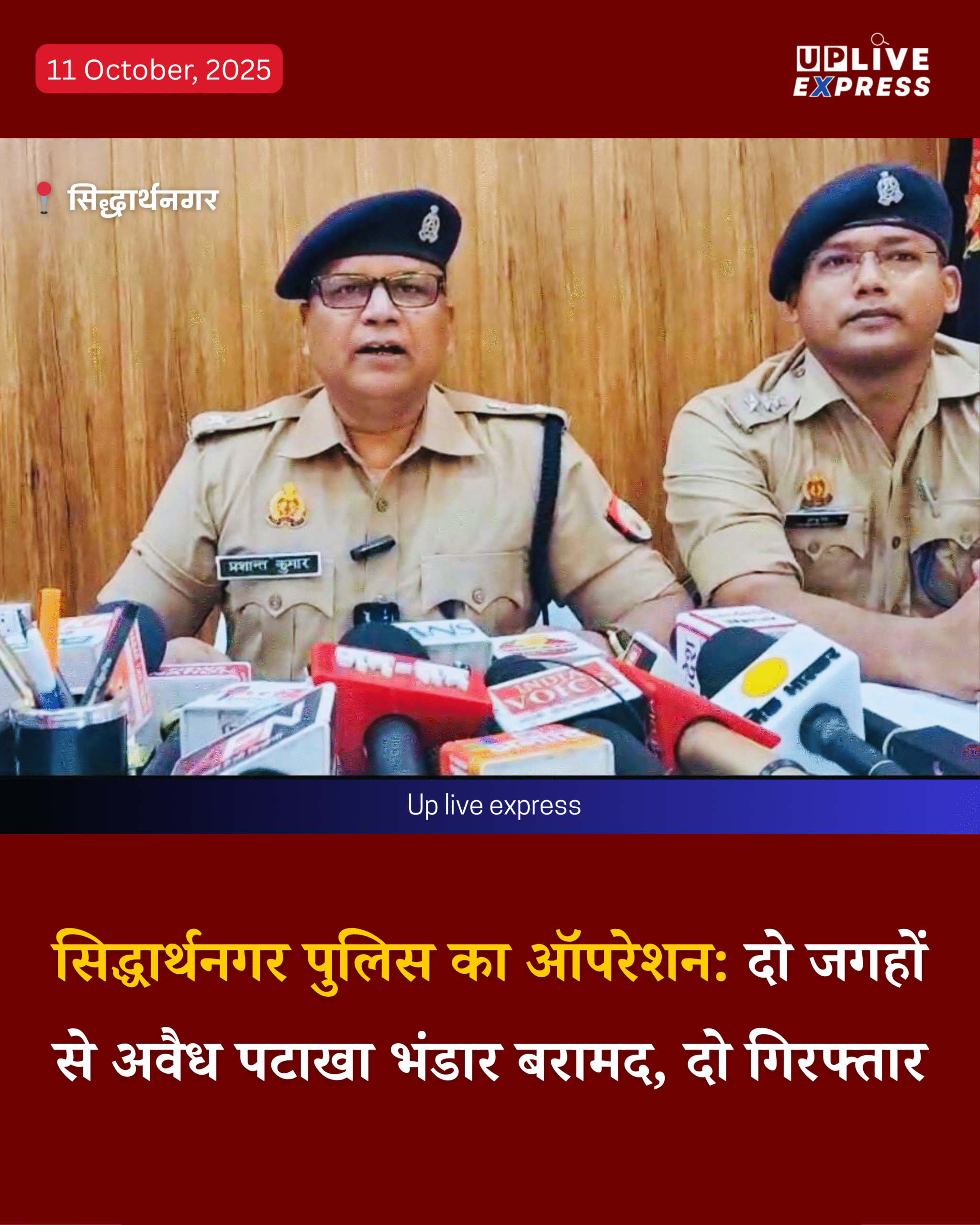 सिद्धार्थनगर जिले की SOG टीम व इटवा थाना पुलिस को संयुक्त कार्रवाई में बड़ी सफलता मिली है। पुलिस ने एक ही थाना क्षेत्र के दो अलग-अलग स्थानों पर अवैध पटाखा भंडार का खुलासा किया है।
