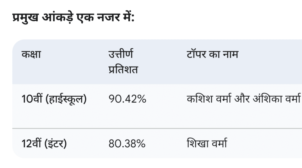 माध्यमिक शिक्षा परिषद के मुख्यालय से जारी आंकड़ों के अनुसार, हाईस्कूल का कुल उत्तीर्ण प्रतिशत 90.42% रहा, जबकि इंटरमीडिएट में 80.38% परीक्षार्थी सफल हुए हैं।