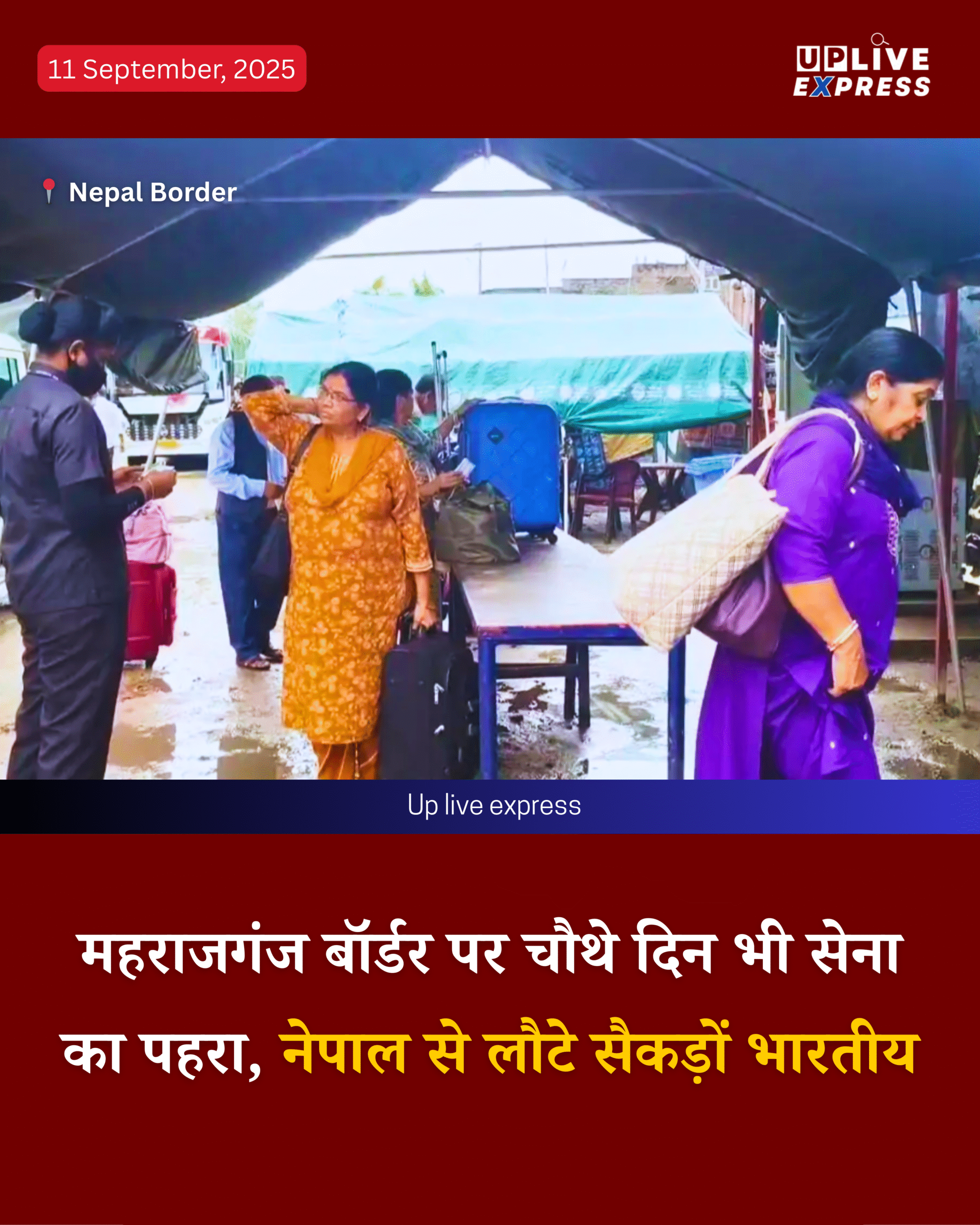 महराजगंज/नेपाल – नेपाल में जारी हिंसक प्रदर्शनों का असर चौथे दिन भी देखने को मिला, हालात अब भी तनावपूर्ण बने हुए हैं और पूरे क्षेत्र की सुरक्षा नेपाल सेना के हाथों में है। इस बीच वहां फंसे भारतीय पर्यटक लगातार स्वदेश लौट रहे हैं।