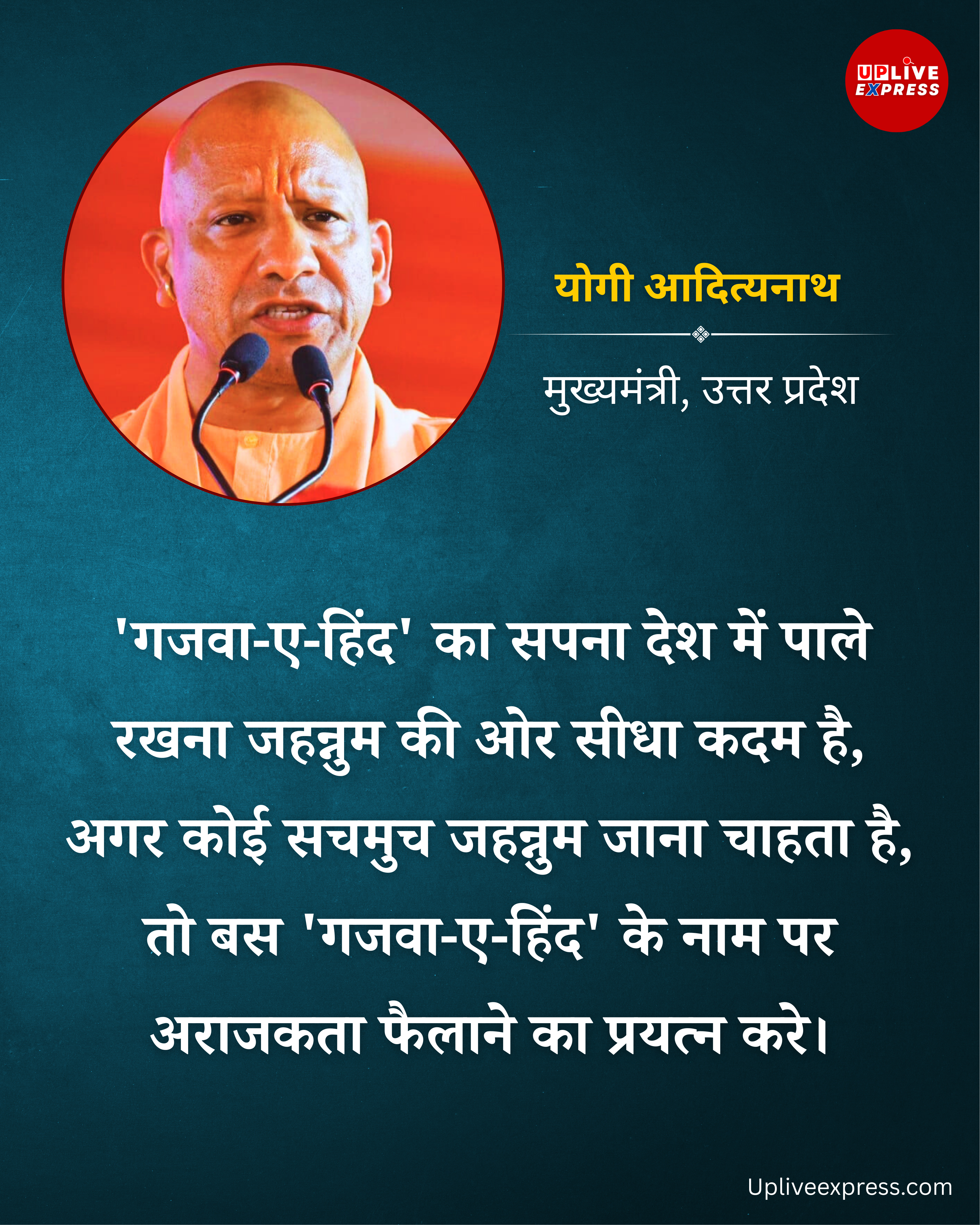 बलरामपुर: उत्तर प्रदेश के मुख्यमंत्री योगी आदित्यनाथ ने बलरामपुर में एक कार्यक्रम के दौरान कहा कि ‘गजवा-ए-हिंद’ की कल्पना करना जहन्नुम में जाने का रास्ता पैदा करेगा, उन्होंने आगे चेतावनी दी कि अराजकता फैलाने वालों का छांगुर बाबा जैसा हाल होगा।